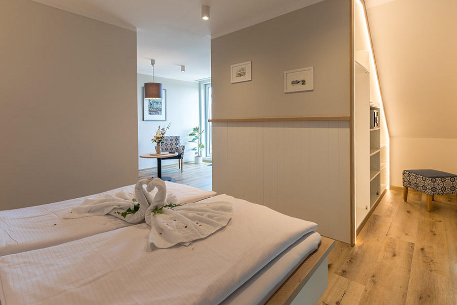 Doppelzimmer Beispiel im Sielhuus mit Erker (gehbehindertengerecht)